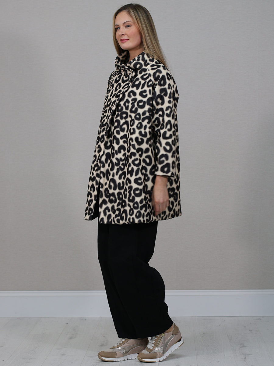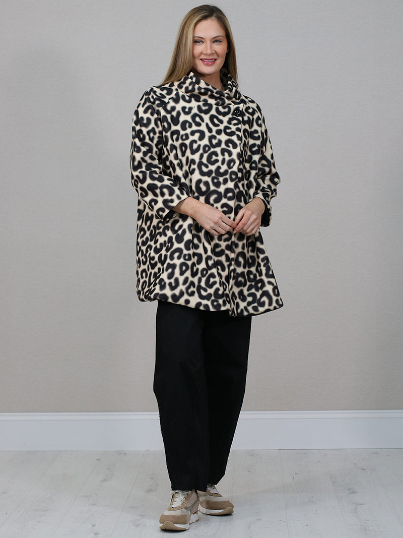 Italian Airbrushed Leopard Print Woolen Coat