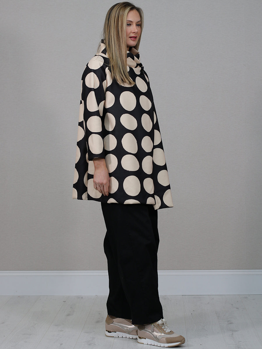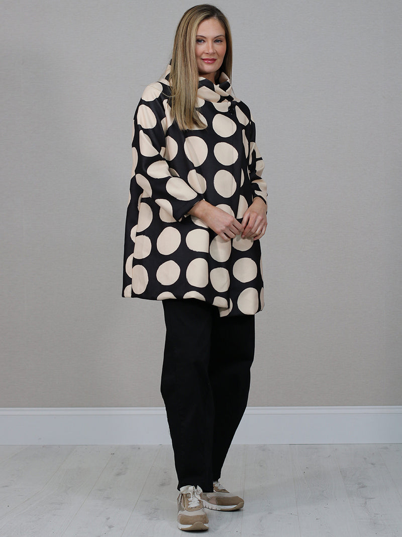 Polka dot coats are incredibly versatile, easily transitioning from casual daywear paired with denim to more formal evening events when styled with elegant accessories.